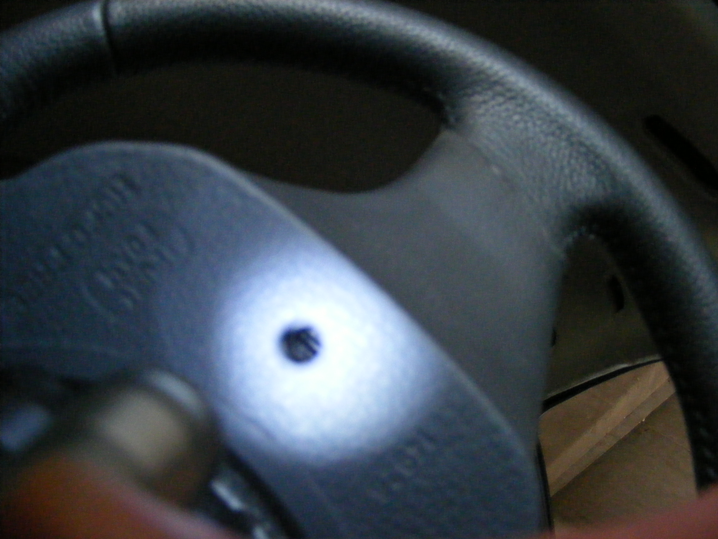 Niekaip nesuprantu, kas ten per varžtai nugarinėje vairo dalyje. Kiek randu internete aprašymų, visur minimi varžtai-žvaigždutės. O čia kažkas panašaus į kniedę su išpjova ir kažkokiu svetimkūniu... Gal galit paporint, kaip anas daiktas nusiima. Bandau pridėti nuotrauką.