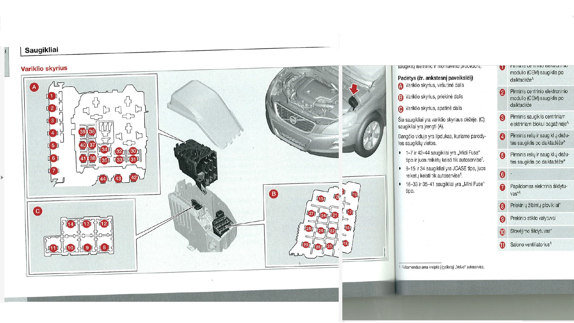 gal kas nors žinote kaip ant Volvo XC60 pakeisti/išimti saugiklius nr 8-14 (prikabinu foto) C blokas? Nes nuėmus apsauginį dangtelį matosi tik viršutiniai saugikliai. O pagal schemą, dar po jais turi būti (C) saugikliai. Reikia tam kad noriu išimti saugiklį nr8, kad nepiltų didžiausios srovės ant priekinių žibintų, vos tik bandant apiplauti priekinį stiklą.